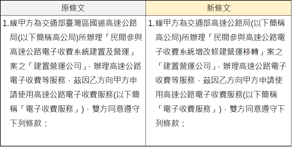 有關前述修訂內容,請參閱下列新舊條款內容對照表。